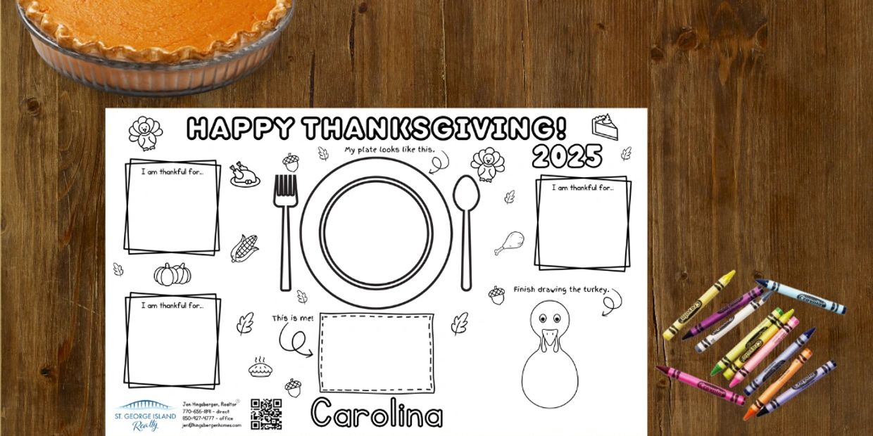 If you’d like a placemat (or a few!), just fill out the quick Google form. You can pick them up at my November Story & Craft Time at Island Espresso , Saturday, November 1st at 10:00 a.m. or at the St. George Island Realty office the week before Thanksgiving. (I’ll share exact pickup times soon!)